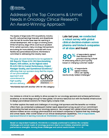 In such unstable times for clinical development, the oncology CRO you partner with can greatly impact your trial’s success. We recently conducted proprietary research to better understand our oncology sponsors’ needs. Check out this article to see what we found and how we are addressing their top concerns and unmet needs.