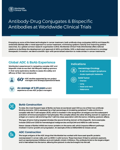 Discover how our global regulatory insights, operational excellence, and strong relationships with key opinion leaders can enhance your ADC and BsAb programs in our fact sheet.