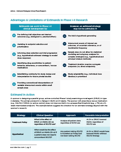 Estimand strategies are crucial in modern clinical research, offering a structured framework to define treatment effects by aligning study objectives with trial design and analysis. Introduced in the ICH E9(R1) addendum, estimands clarify how to handle complexities such as treatment discontinuation and rescue medication use, thereby enhancing trial transparency and relevance for stakeholders. Initially emphasized in Phase III trials, estimand strategies are gaining popularity in early phase trial protocols to improve decision-making and dose selection.