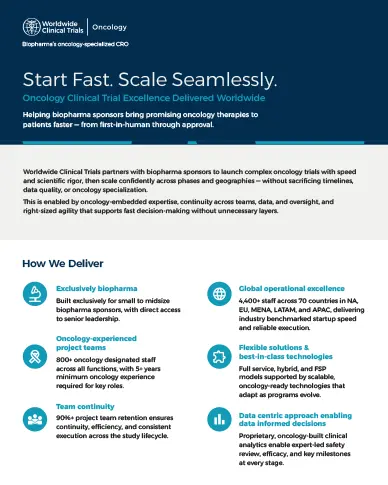 Read our fact sheet to learn more about how Worldwide’s oncology expertise can support your clinical development program.