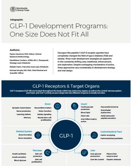 Glucagon-like peptide-1 receptor agonists have begun to shift our understanding of type 2 diabetes and obesity management. Clinical development has three main strategies: traditional approaches, enhancement, and exploratory routes. Despite the shared mechanisms of action, these clinical approaches vary considerably in development strategy and trial design.