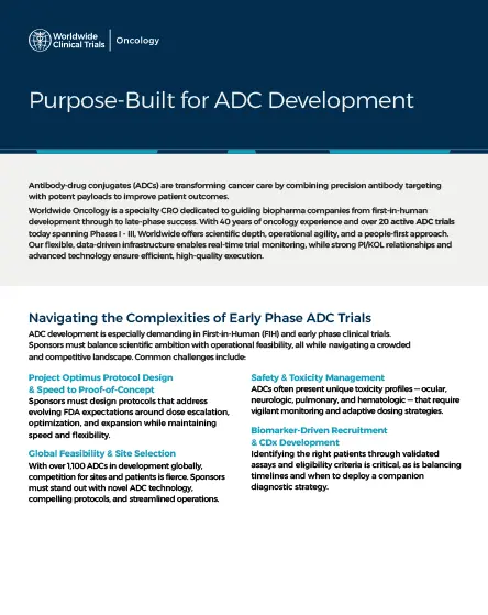 Antibody-drug conjugate (ADC) clinical trials require a nuanced, expert-guided approach. We understand that ADCs are transforming cancer care by combining precision antibody targeting with potent payloads, but their development presents unique challenges in first-in-human and early-phase trials.