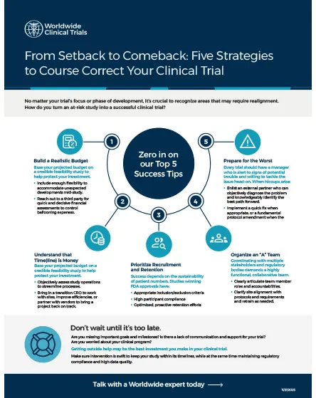 No matter your trial’s focus or phase of development, it’s crucial to recognize areas that may require realignment. How do you turn an at-risk study into a successful clinical trial?